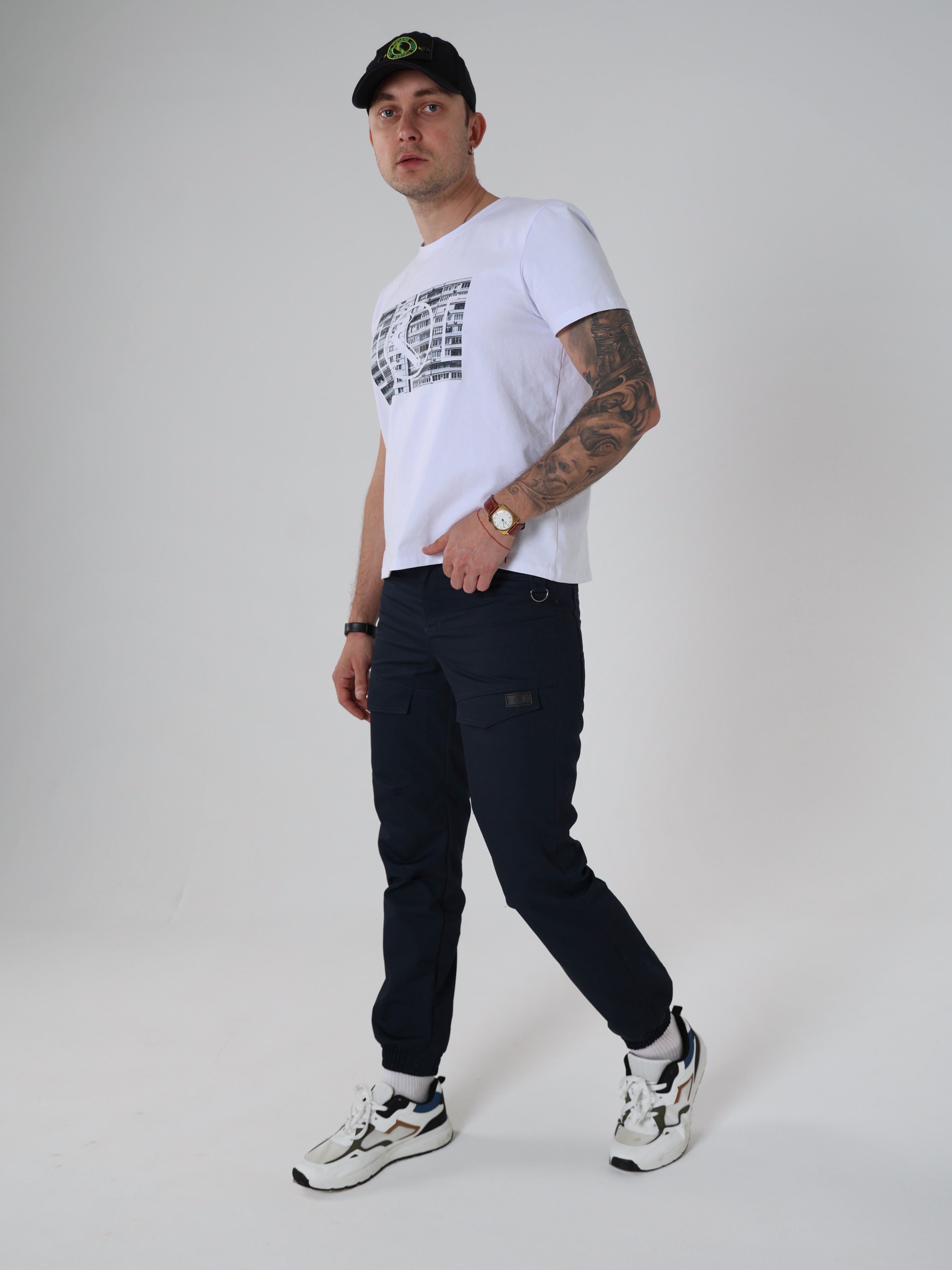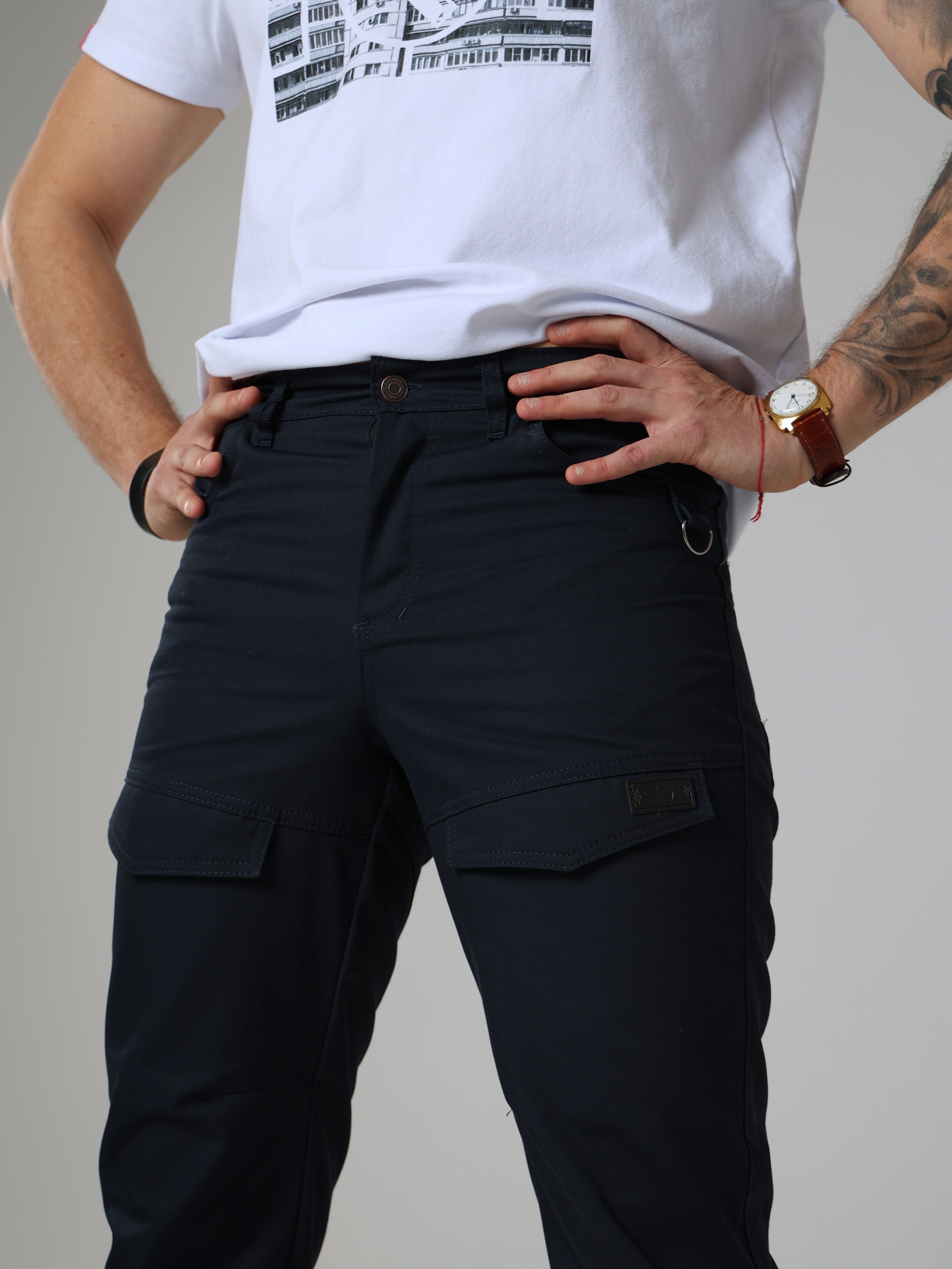 А вот серые карго на повседнев, 100 хлопок, очень приятные тактильно. Карманы передние расположены оригинально , но думаю без проблем найдется приминение ( наличие, карточка, пропуск, паспорт)...