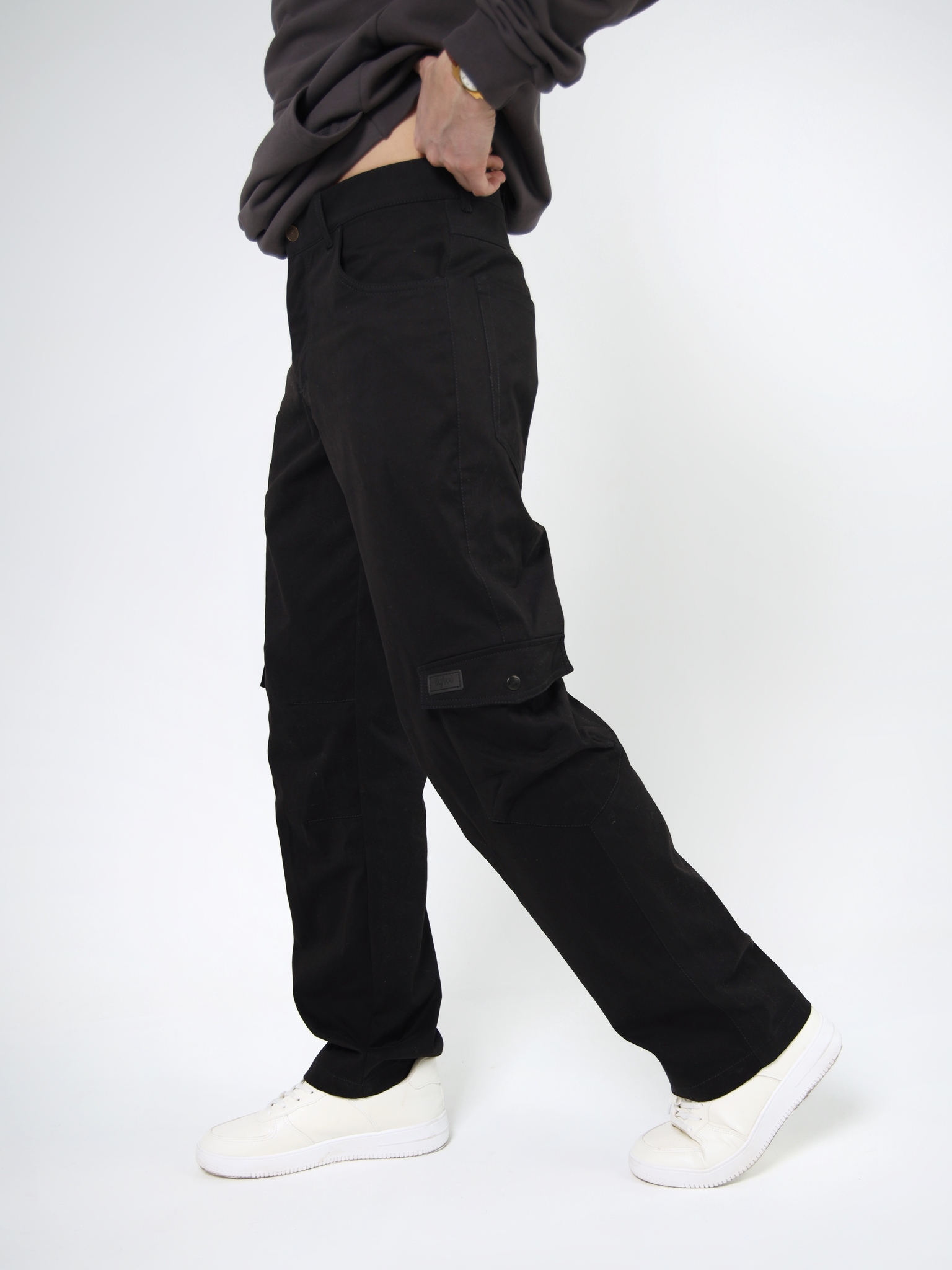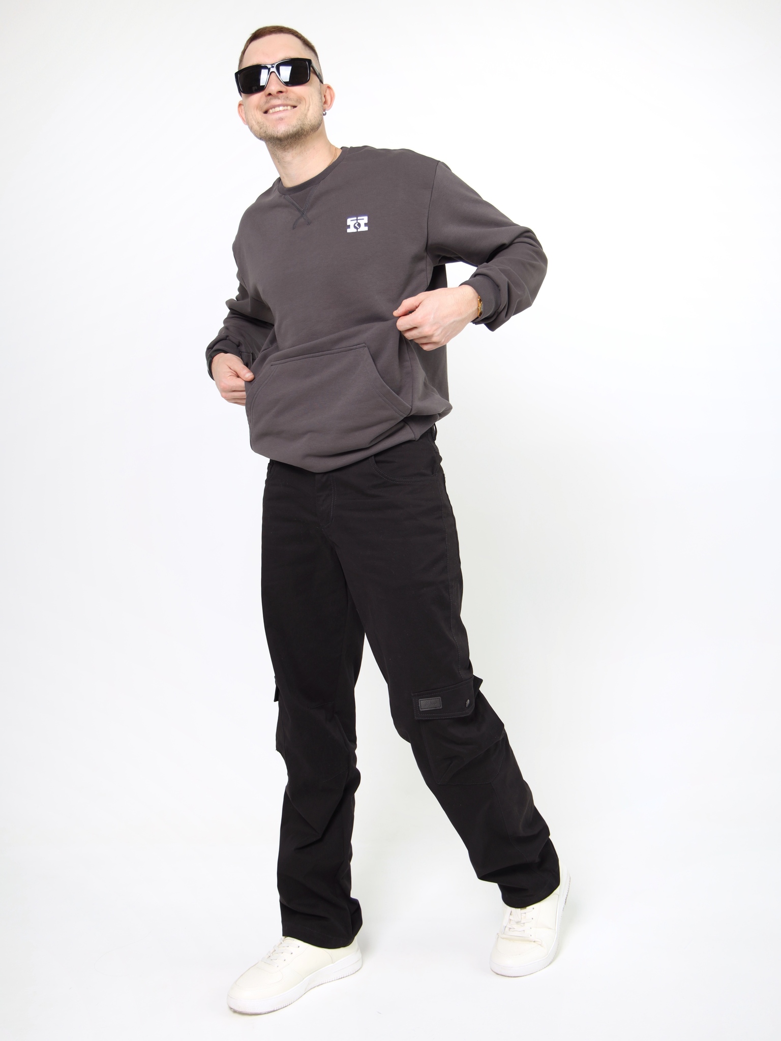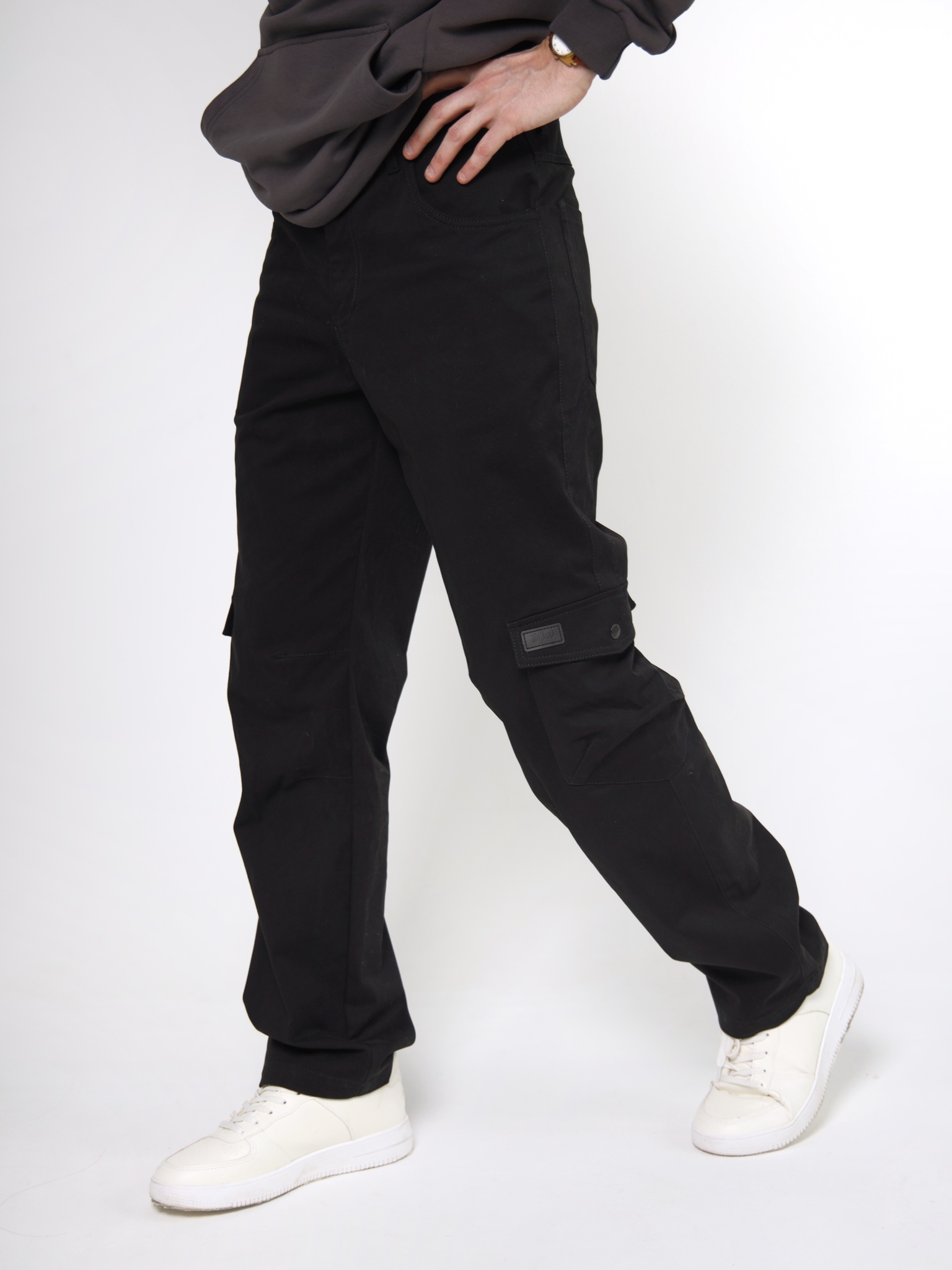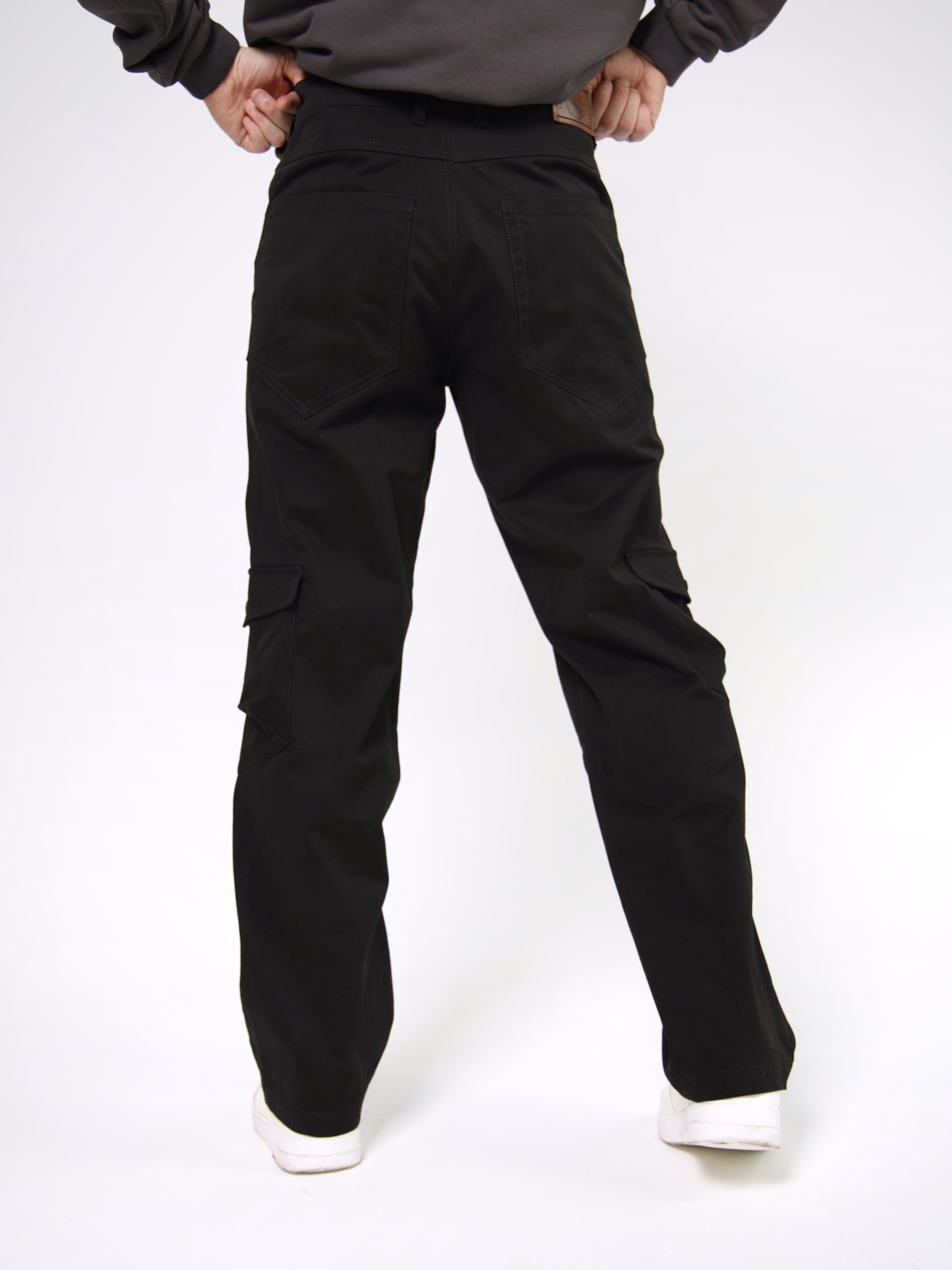Брюки карго – универсальный низ, который чаще всего делают с манжетами – как мужские джоггеры. Но эту модель мы намеренно сделали без манжет, с прямыми брючинами: так они стали менее спортивными, но все еще в уличном стиле. Да и в целом такие мужские карго с карманами подойдут для офиса и повседневной носки. Они отлично сочетаются с любым верхом.