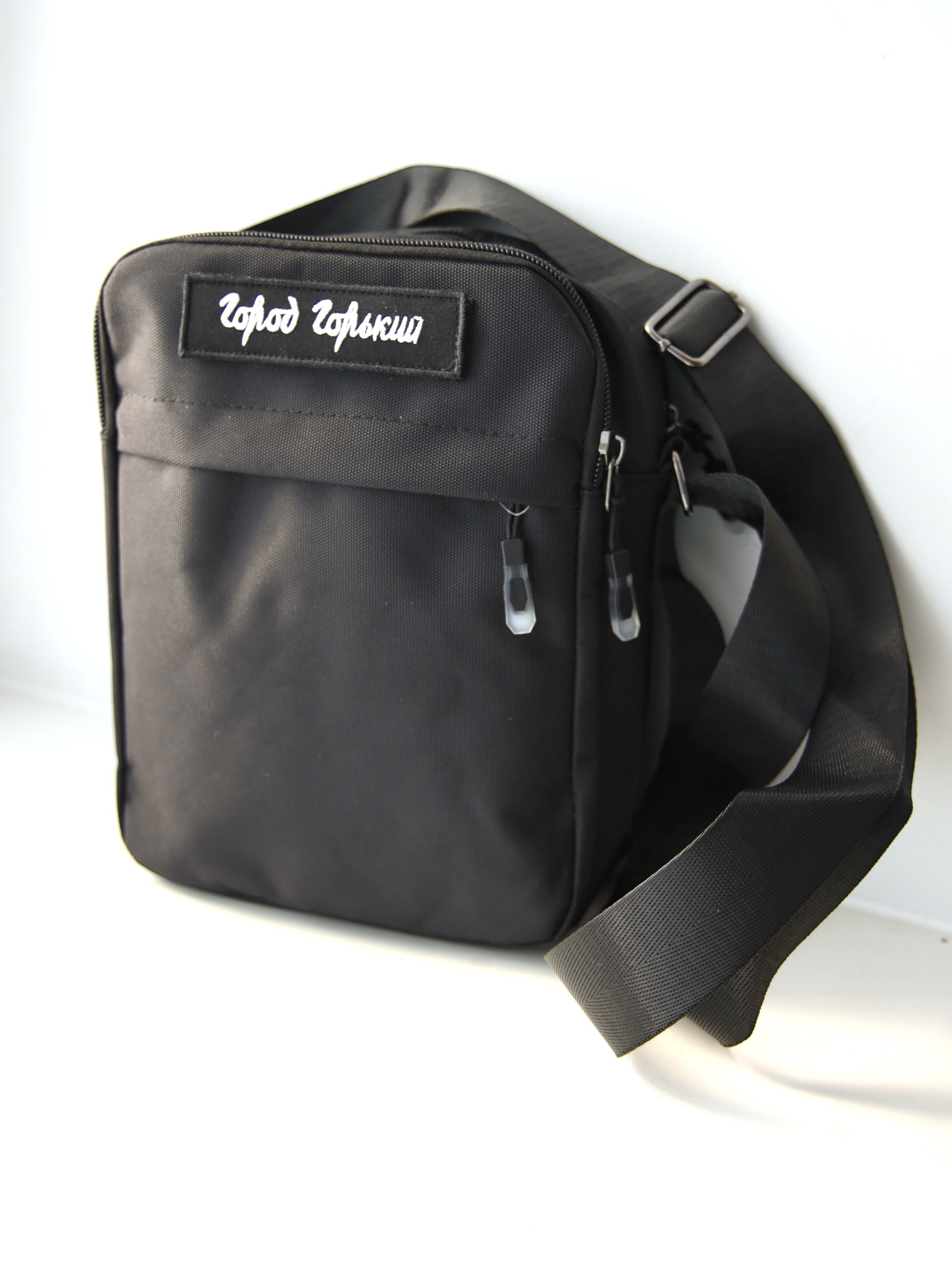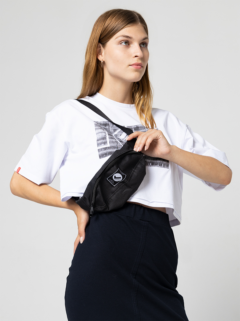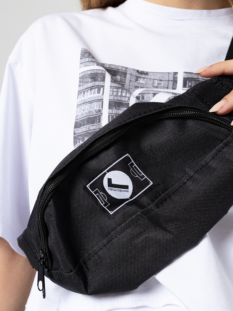 Квадратная сумка на пояс, в которую поместится не только телефон, но и паспорт с водительскими правами и еще несколько важных вещей с собой. Компактная, но вместительная, практичная и стильная. Фирменная деталь Город Горький: шеврон-липучка, которую можно менять. Универсальный черный цвет.