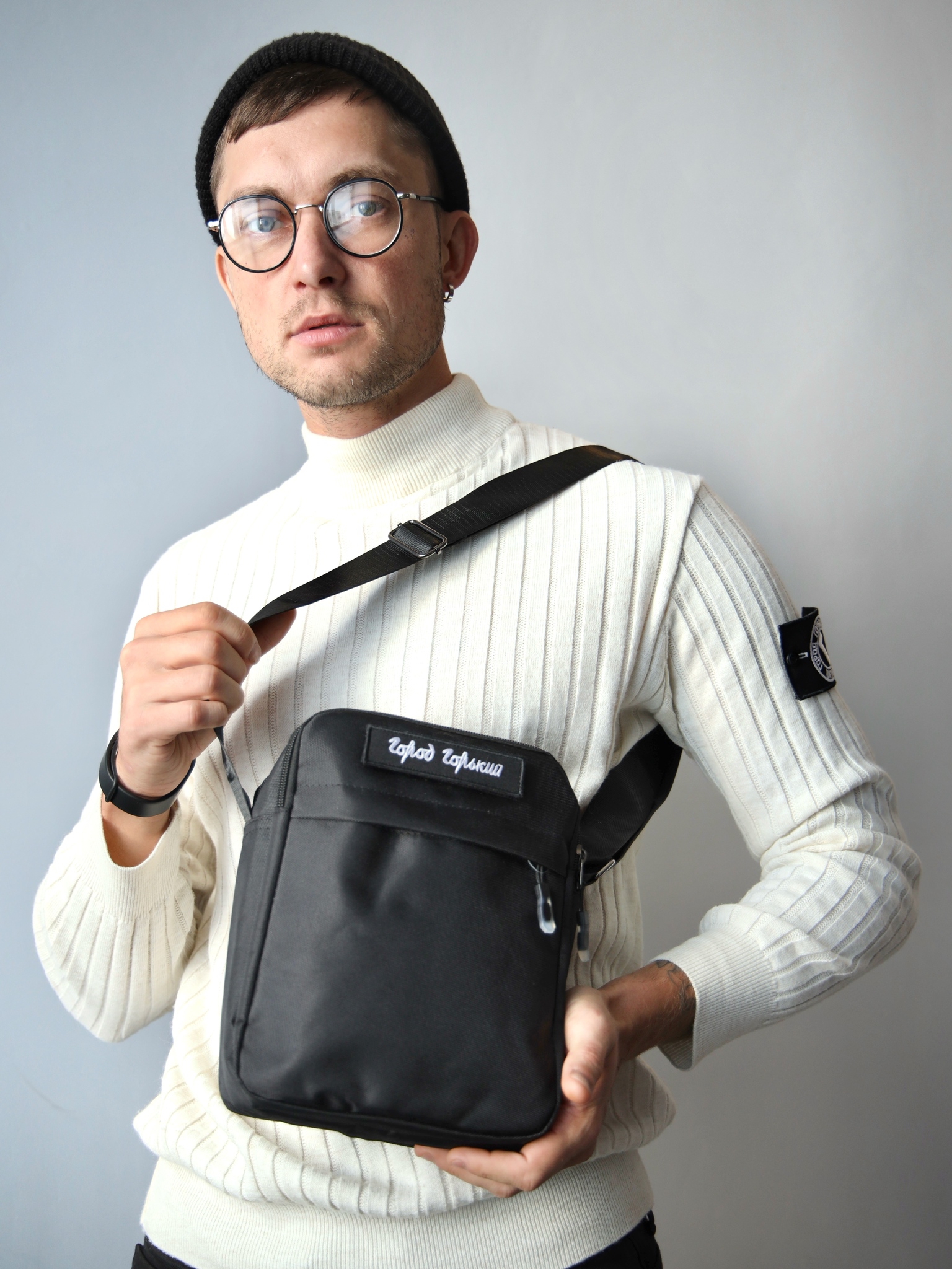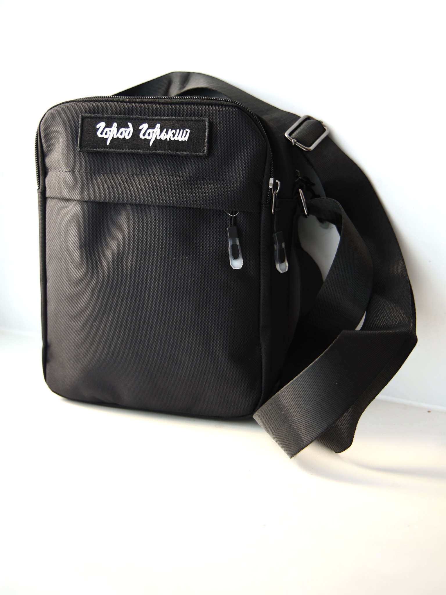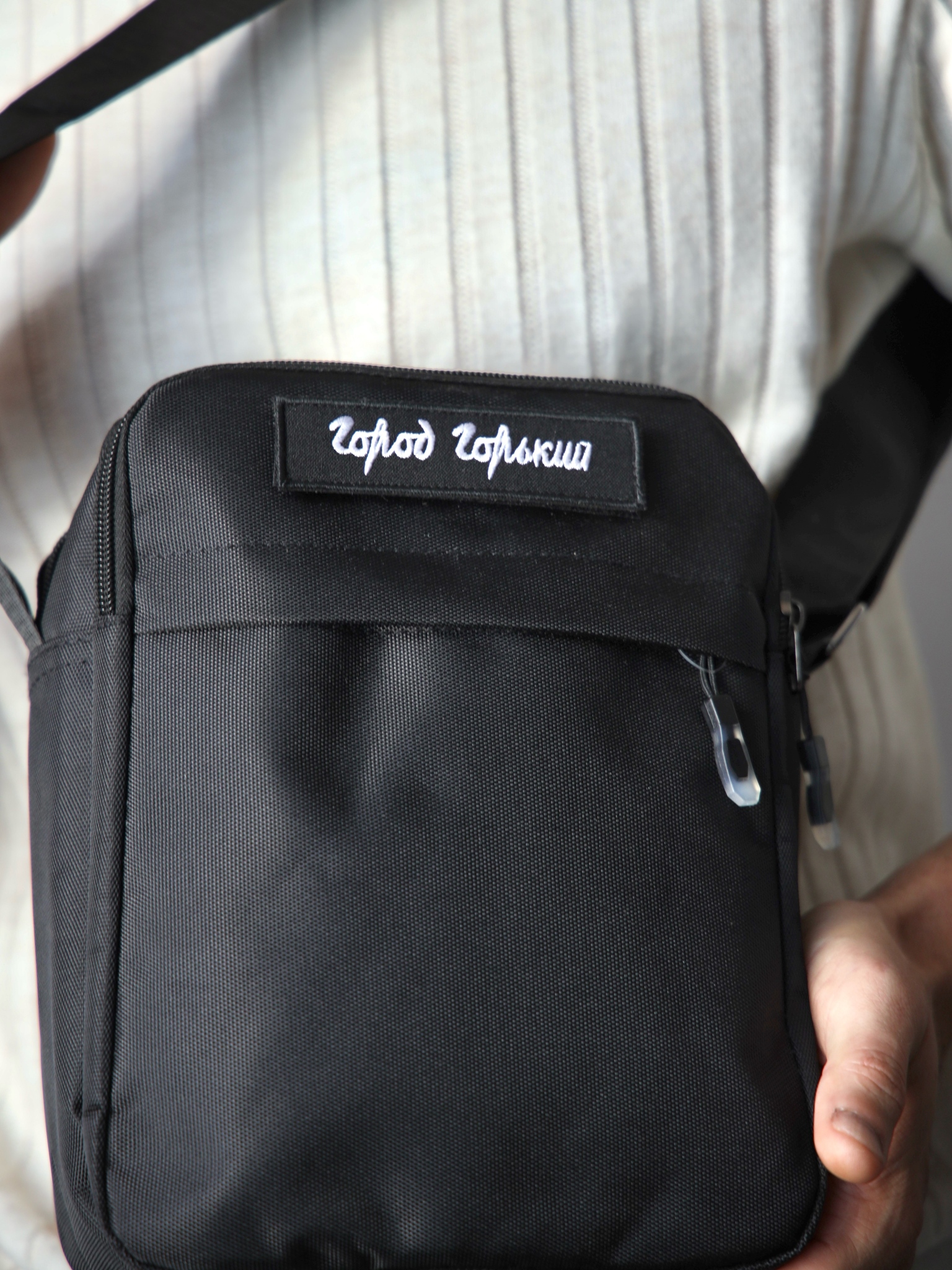 Квадратная сумка на пояс, в которую поместится не только телефон, но и паспорт с водительскими правами и еще несколько важных вещей с собой. Компактная, но вместительная, практичная и стильная. Фирменная деталь Город Горький: шеврон-липучка, которую можно менять. Универсальный черный цвет.